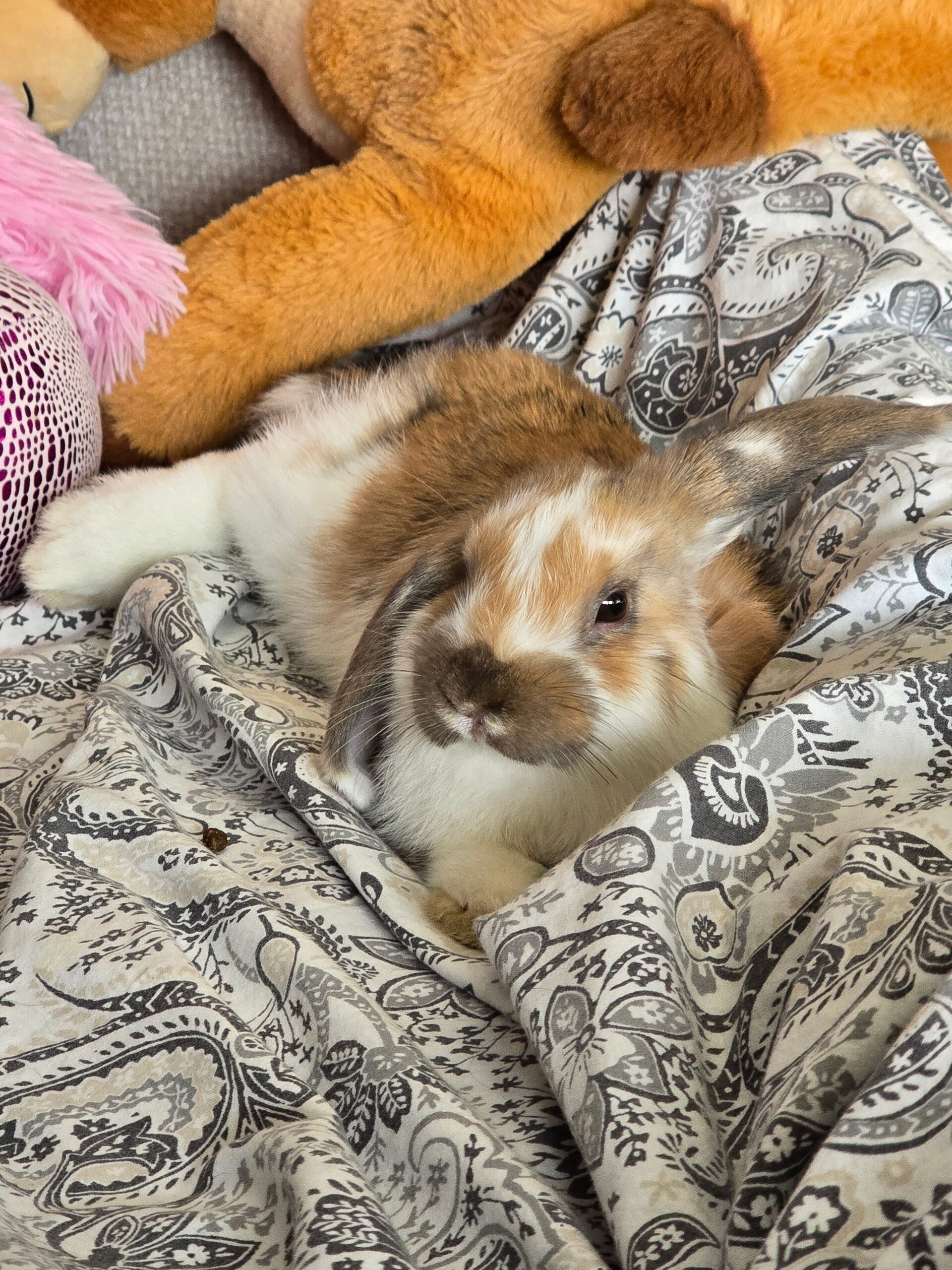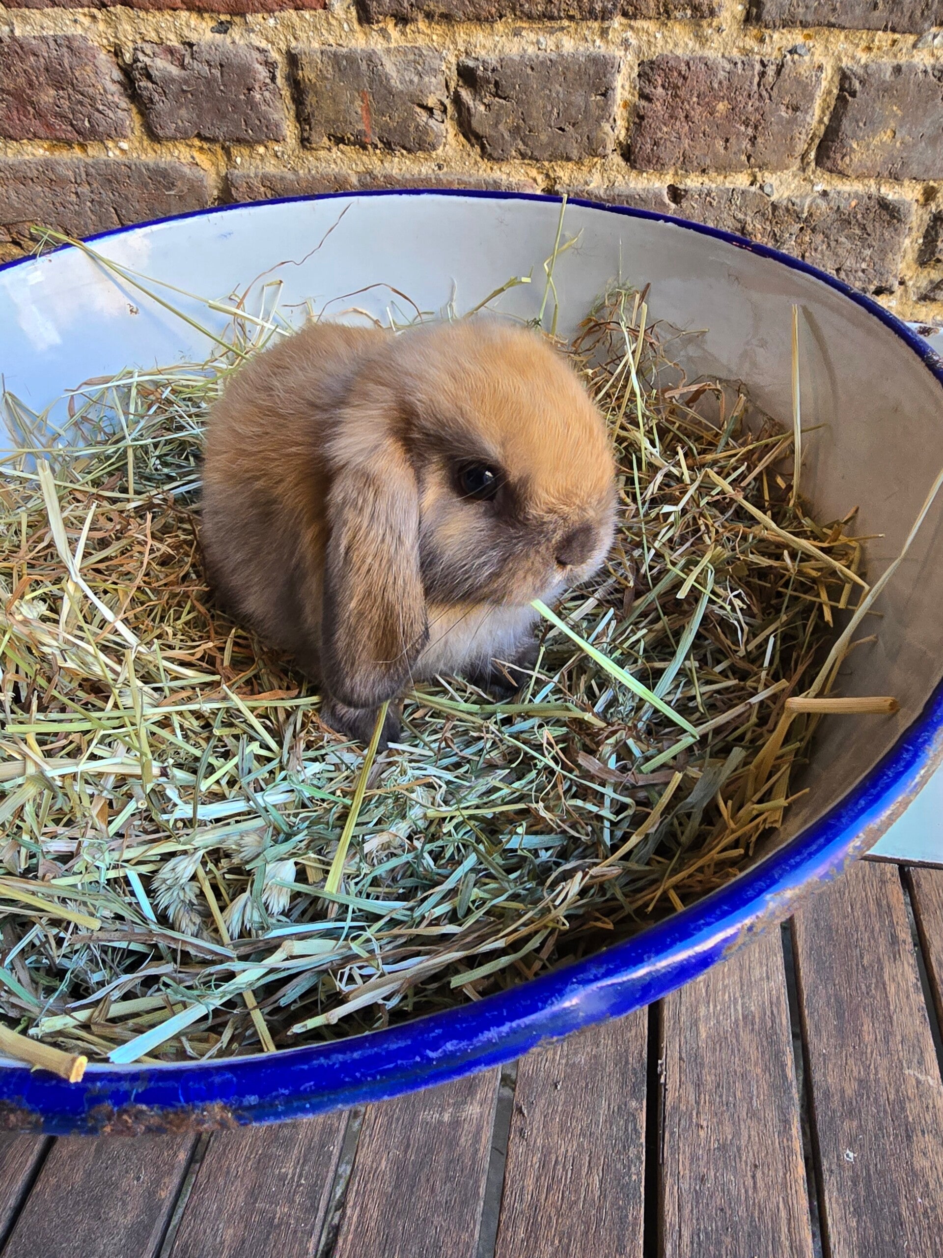 Moppie, ons 2de konijn, is een rustig konijn met hangoren die weet wat ze wil. Ze zoekt geen grote aandacht, een paar zachte aaitjes zijn voor haar al genoeg om zich geliefd te voelen. Ze kent haar mensen heel goed en voelt precies aan wie haar een moment van rust en zorg kan geven. Haar kalme en liefdevolle karakter maakt haar een perfect konijn, die met haar stilte en warmte altijd een stukje vreugde in huis brengt.
